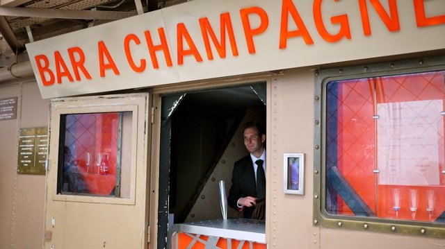 Yes, on the southern side of the summit level, tucked away in the former architect’s office, is the Bar à Champagne (really a counter).