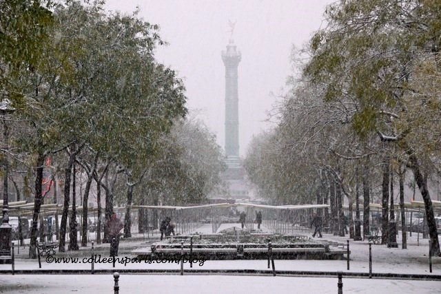 Paris was paralyzed on December 9, 2010. Small trucks at Place Pigalle were spinning their tires. Men had to get out and push them through the stop lights. The roads were full of ice. The buses could not move because the cars could not move.