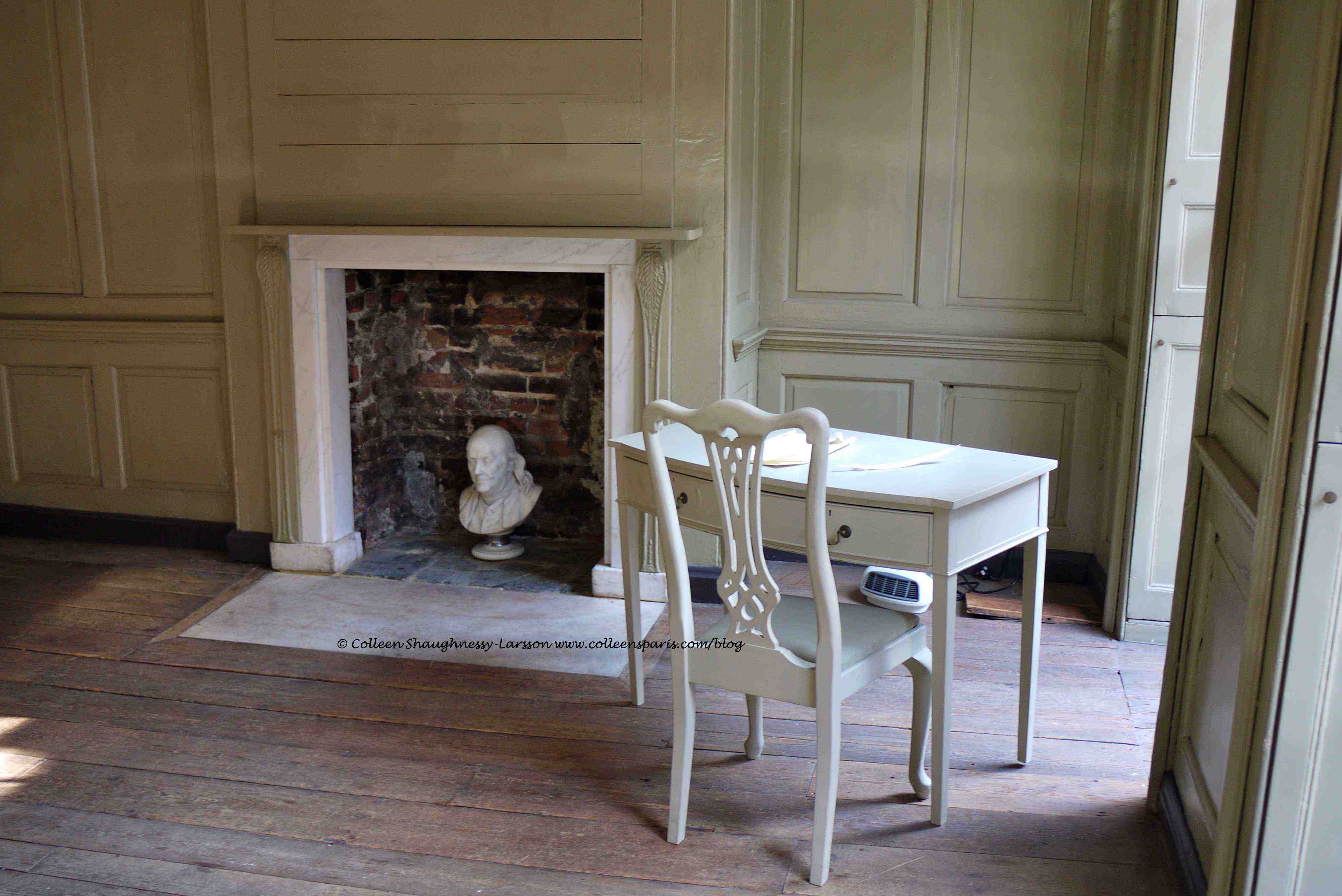 eccentricities and of the survival of this little house through the shifting of the Thames embankment, railroad station construction, war, and redevelopment. An unexploded World War II bomb that dropped shattered all of the original windows, but left the shutters, floorboards, walls, fireplaces and stoves intact. When I returned home, I pulled down from the shelf “The First American: The Life and Times of Benjamin Franklin” reviewing the numerous passages relating to his acquaintances with Mrs. Stevenson and Polly Hewson and his London stay. This house, a de facto embassy at the time, is to be admired for its historical symbolism and interior architecture and not for its furnishings. Playing the “Glass Armonica” on the architecture tour was a new and fun experience.