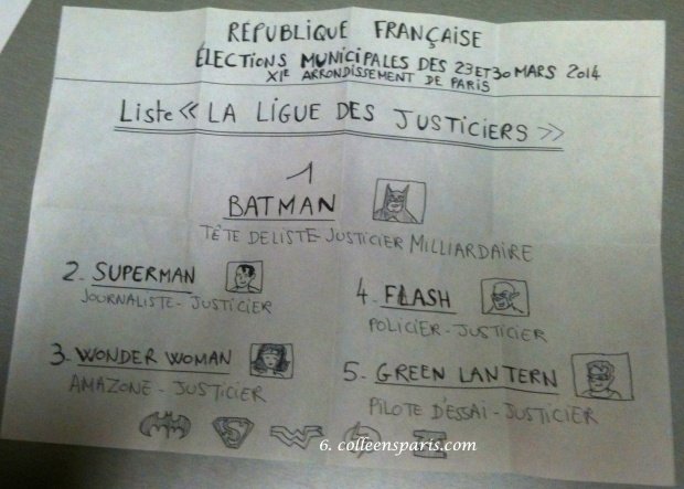Personalized voting ballot for Batman at the municipal elections in Paris