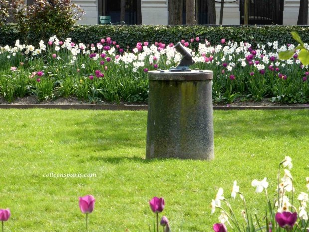 At the Palais-Royal gardens, while enjoying the spring magnolias and narcissus one cloudy, chilly Spring day in March, I noticed a little canon perched on a pedestal on the grass. The sign said that since 1990 it was once again functioning, firing at noon every day. I believed the sign!