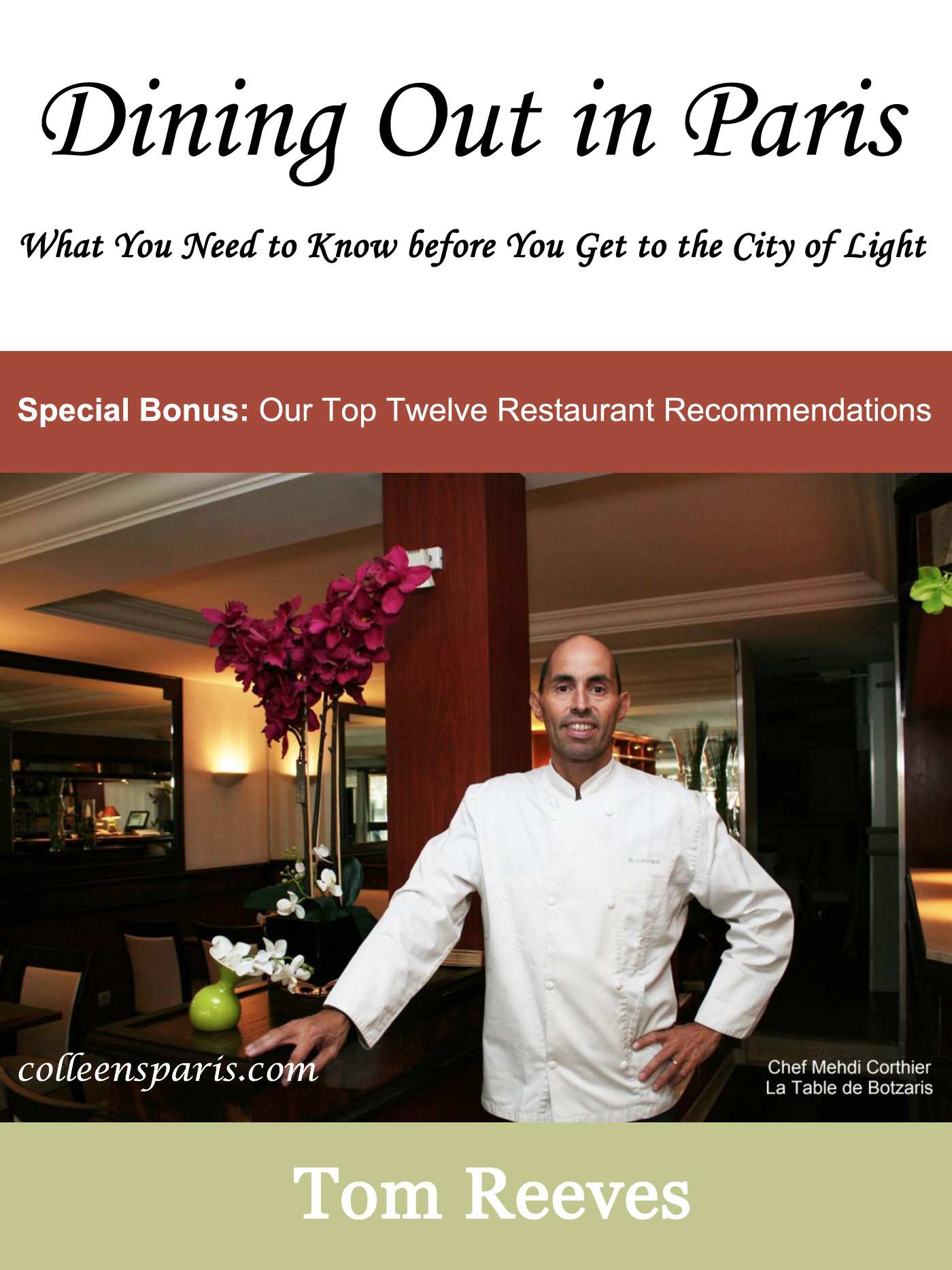 Dining out Tom Reeves cover 01While on the plane, spend less than two hours scrolling through the pages of Tom Reeves’ helpful ebook, “Dining Out in Paris: What You Need to Know before You Get to the City of Light”. The delightful book is heavy with information, light to carry and easy to read “cover to cover”.