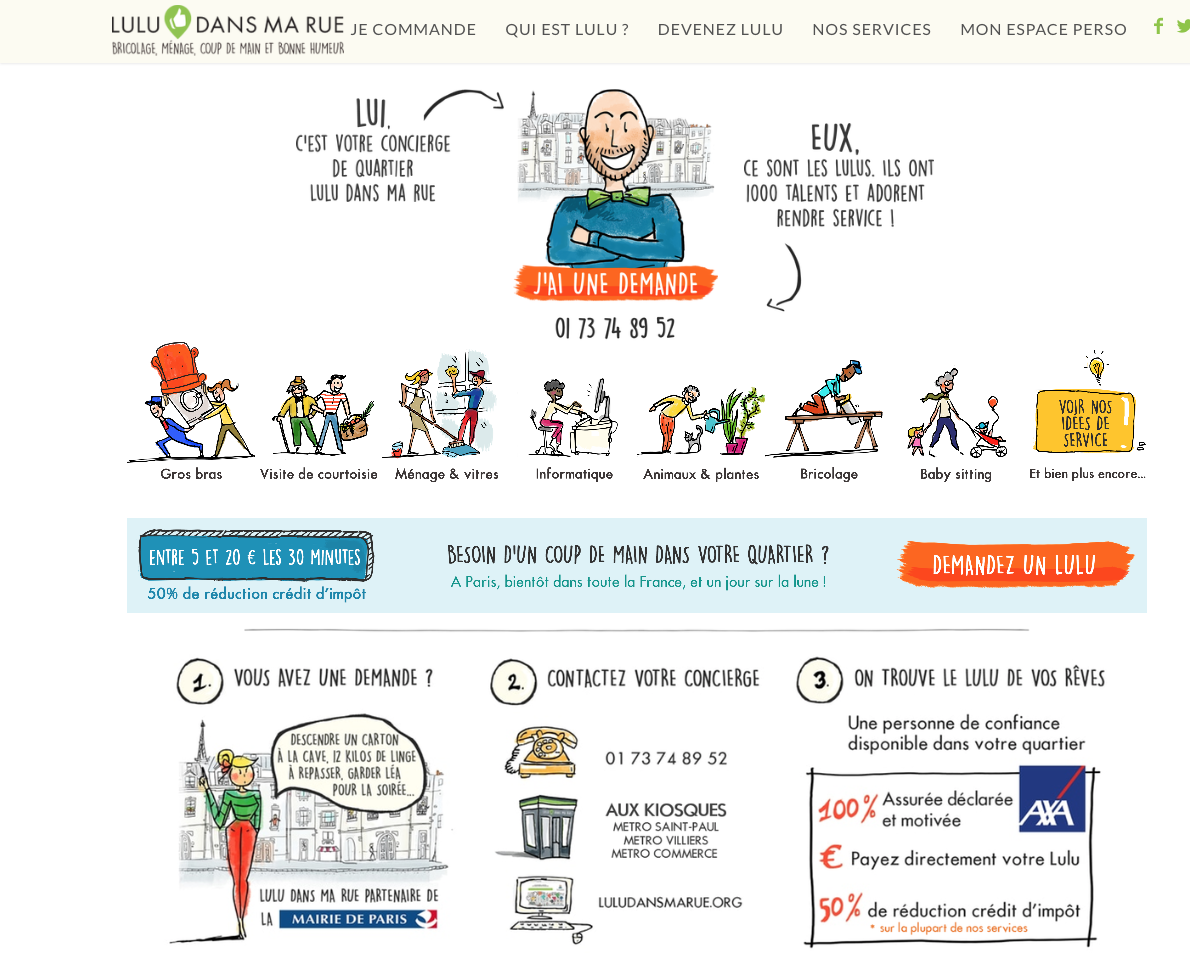 ** Want to be a Lulu in your neighbourhood and put your skills to work, have experience, set your hours, receive help setting up your micro-business from the association, attend commercial and technical workshops, and earn between 8 and 30 euros an hour? Follow the Lulu toolbar option “Devenez Lulu” (become a Lulu).