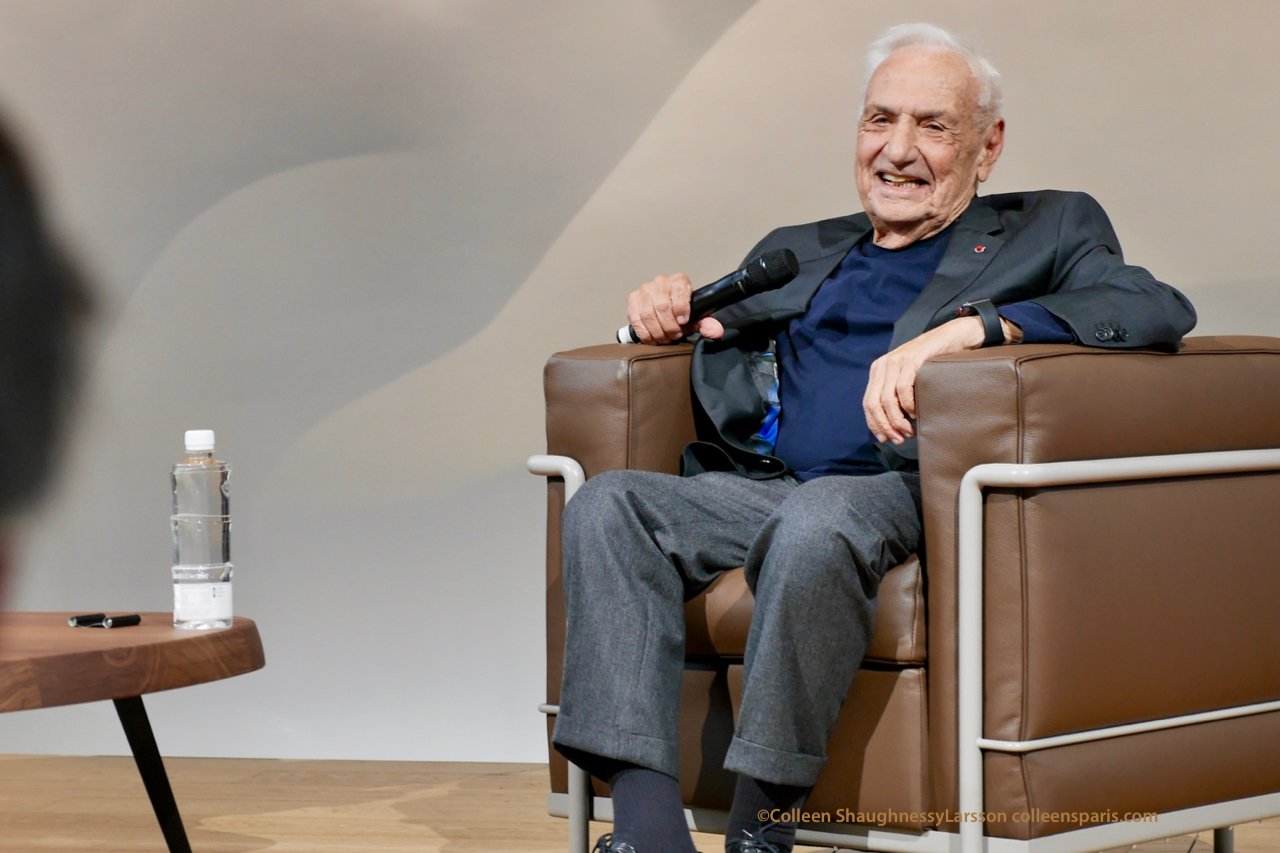Frank Gehry had just left the auditorium at the programmed event “Around the Charlotte Perriand exhibition–A conversation between Frank Gehry and Jean-Louis Cohen” at the Fondation Louis-Vuitton.
