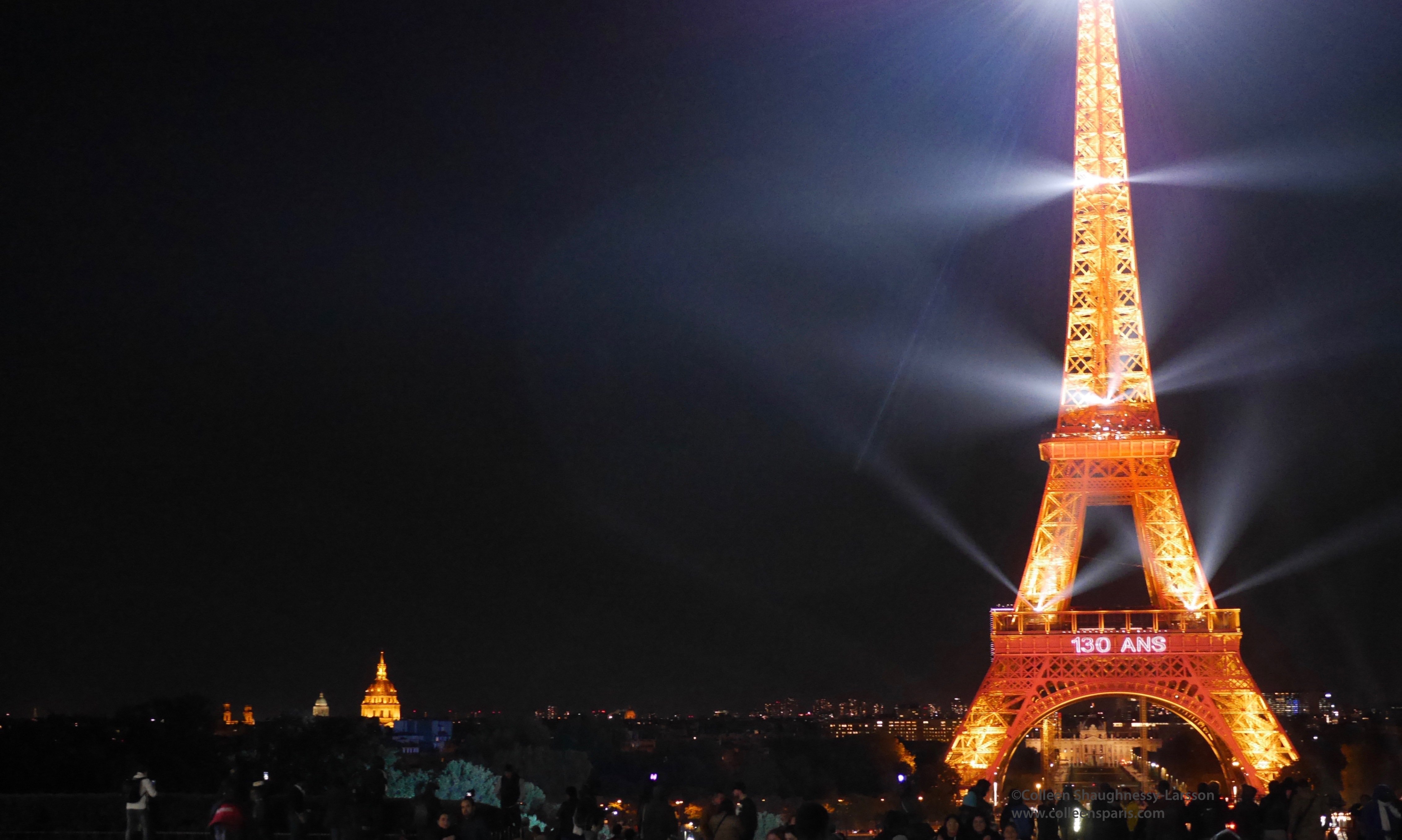 When I heard the Eiffel Tower would be lit in pink at 8:20 pm on an October evening it was pouring rain. By the following day, viewed from the lights seen from the Trocadero plaza, the pink had turned to a yellow copper and now read “130 years”. In May 2019, the Eiffel Tower turned 130; however, why not celebrate the birthday all year long.