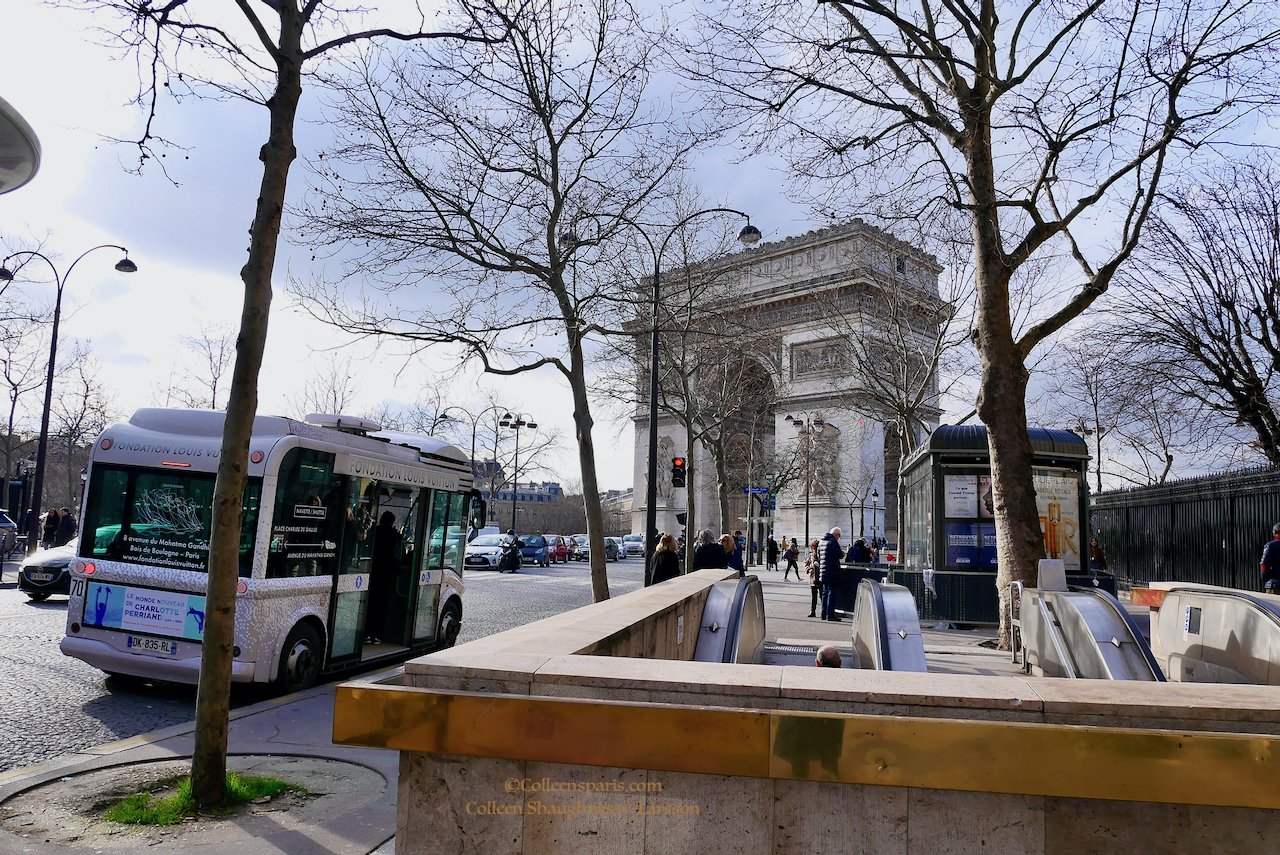 Fondation Louis Vuitton shuttle facing Arc de Triomphe next to metro Charles de Gaulle Étoile, sortie Avenue Friedland