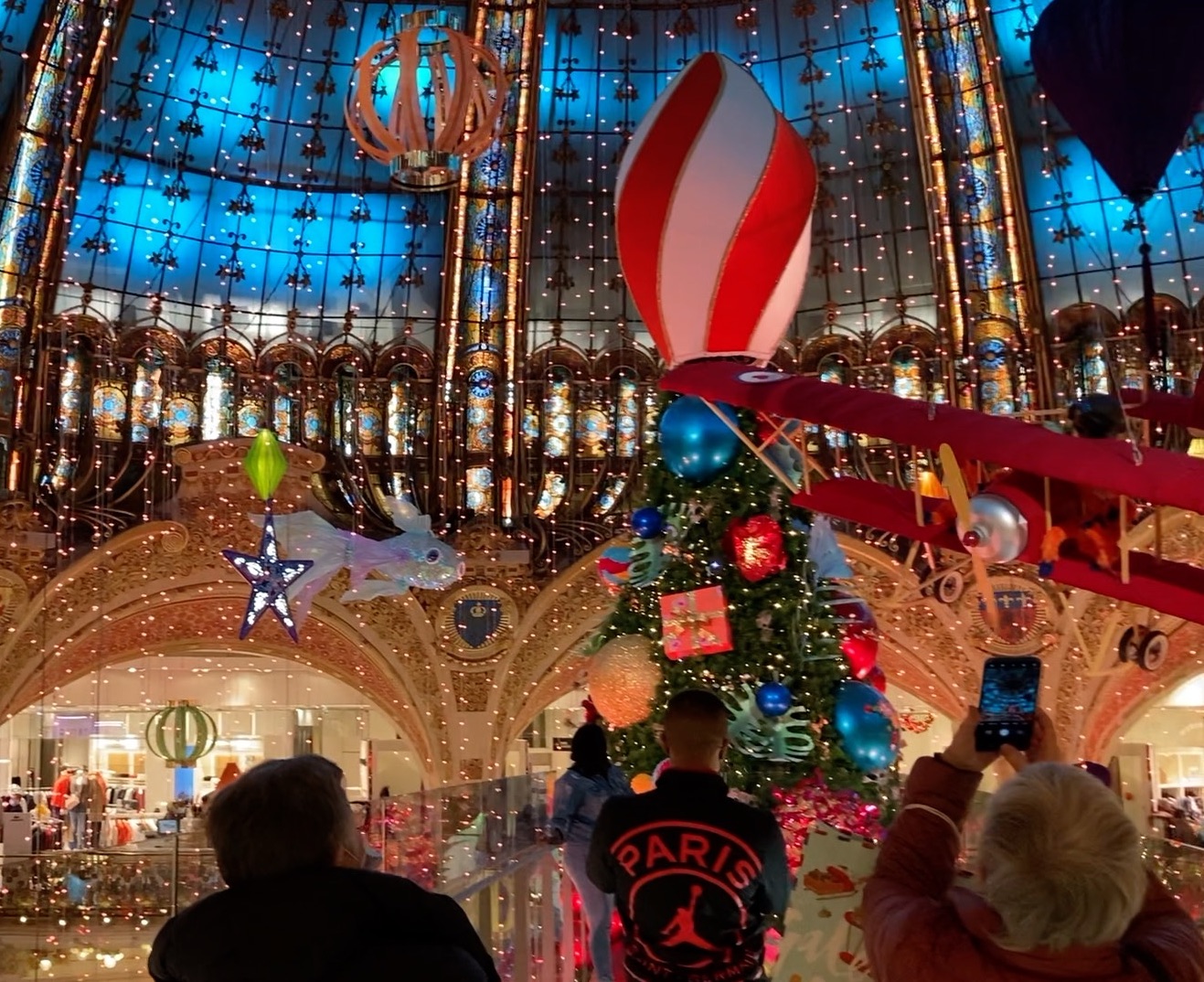 Paris Sparkles during the Holidays. Take a Paris Voyage with Colleen’s Paris on small street of the Bastille, the department store decorations and rooftops, watch the lights come up on the Champs-Elysées and see Avenue Montaigne lit up, a carrousel in the Tuileries Garden and be mystified at the blue velvet column of the Bastille.