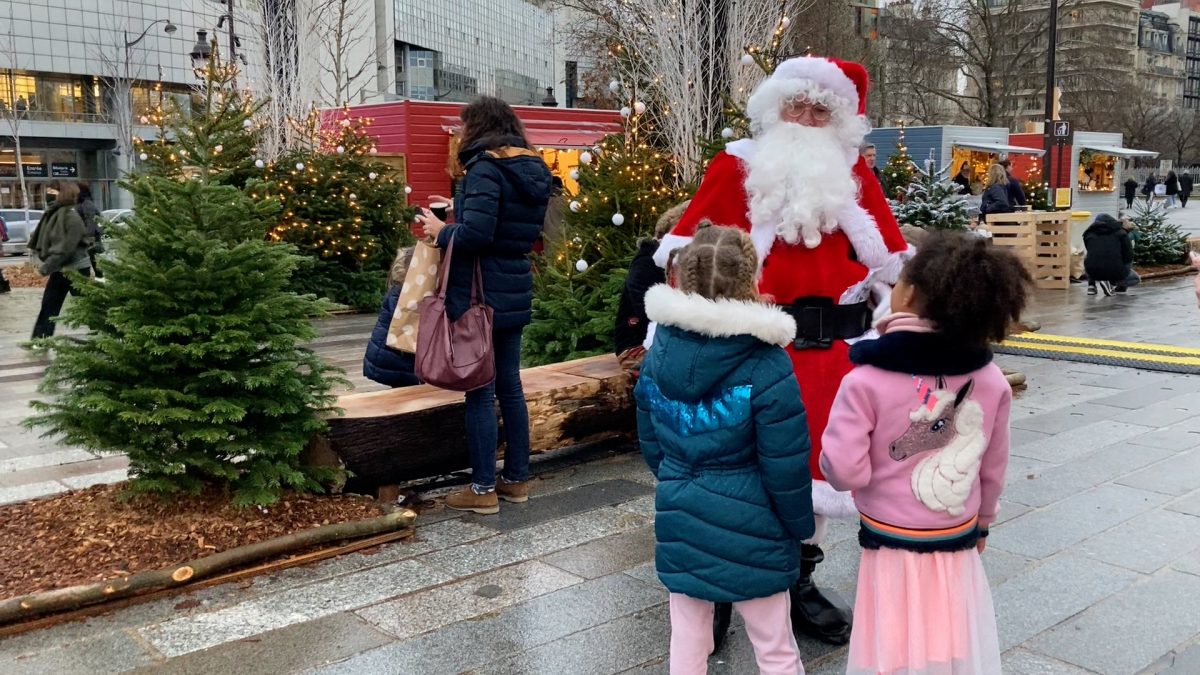 Father Christmas is having fun walking around the Bastille plaza to meet the children. It’s interesting to see the parents take a step back as the children approach Father Christmas, look up and chat with him.
